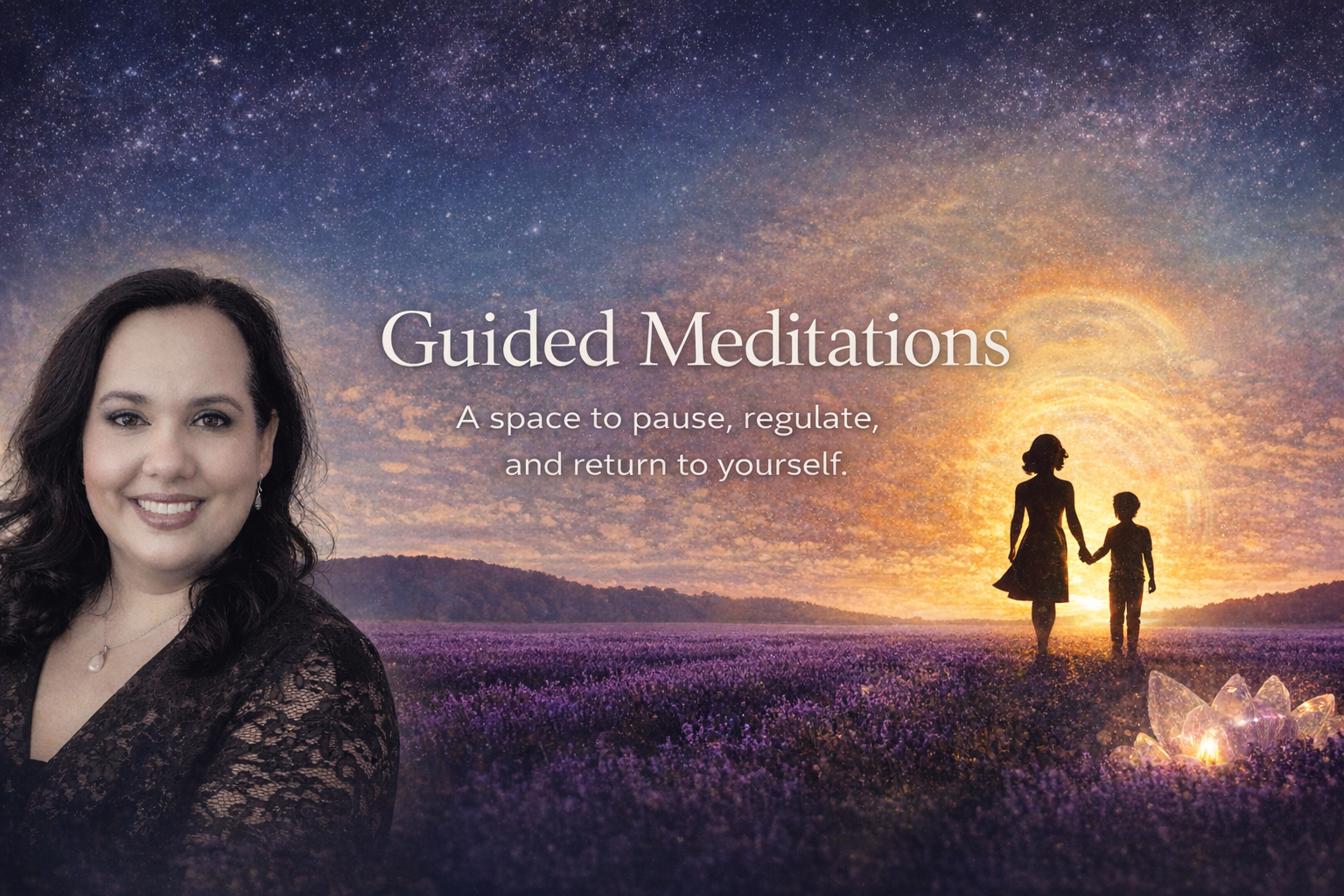 Each meditation is intentionally brief, between three and four minutes, designed to meet you in real time. In the car before school pick-up. After a rupture. At the end of a long day. In the quiet moments when you remember you matter too.